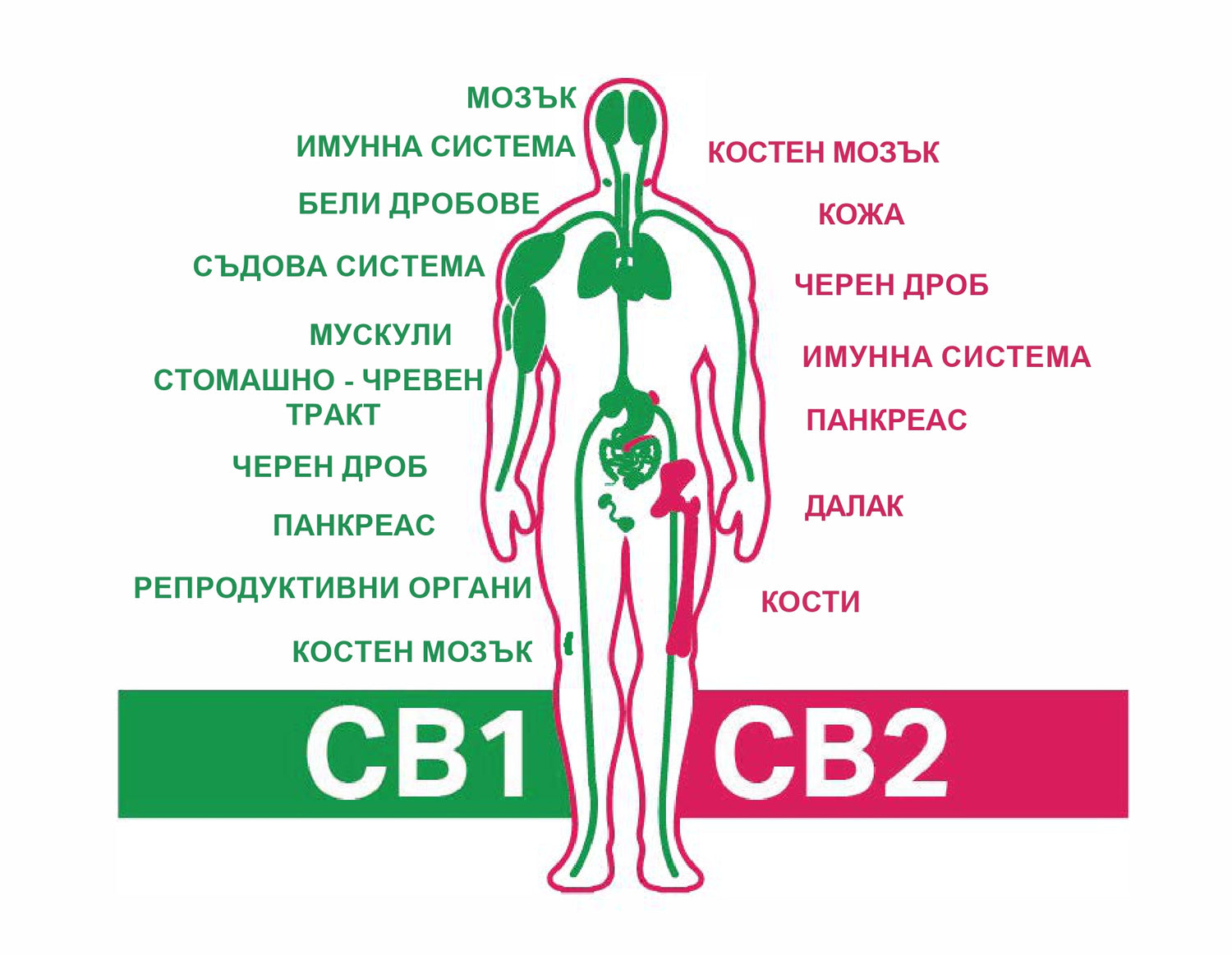CBD въздейства върху рецептори, ензими, йонни канали и транспортни протеини.